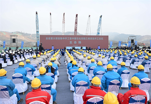 - The Sinopec Yueyang million-ton ethylene refining and chemical integration supporting and transformation project started construction at the main venue in Yueyang. With a total investment of 35.7 billion yuan, it boasts Hunan's largest single investment in industrial projects, driving a downstream investment of more than 150 billion yuan. Upon completion, it is expected to facilitate the expansion of the provincial modern petrochemical industry chain into downstream industrial chains, thereby advancing its position in the high-end value chain.