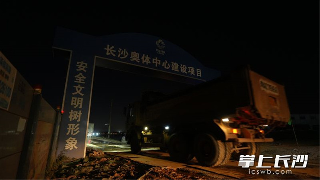 The first fleet of vehicles for the main stadium construction of the Changsha Olympic Sports Center enter the construction site. (Photo provided by the correspondent)