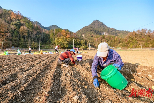 The photo, taken on December 7, shows farmers planting potatoes in the fields at Ximenkou Village, Qianzhou Neighborhood, Jishou City. Major Snow, or "Da Xue," the 21st solar term on the traditional Chinese calendar, began on that day this year. This solar term marks the beginning of mid-winter. During this solar term, farmers are busy seizing the time to conduct winter farmwork in an orderly manner. (Photo/Peng Jing)