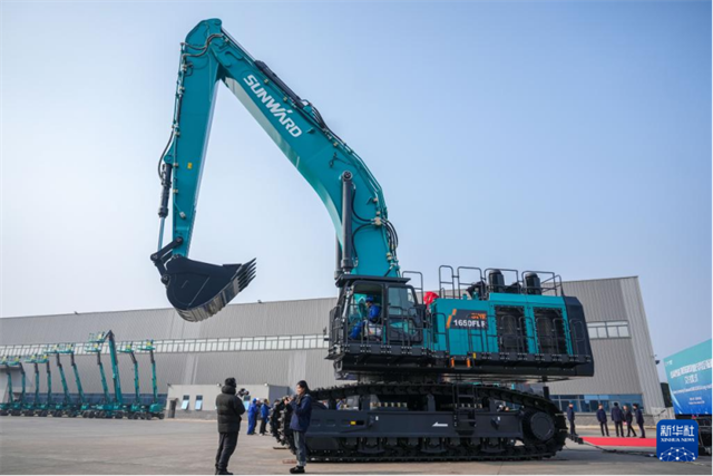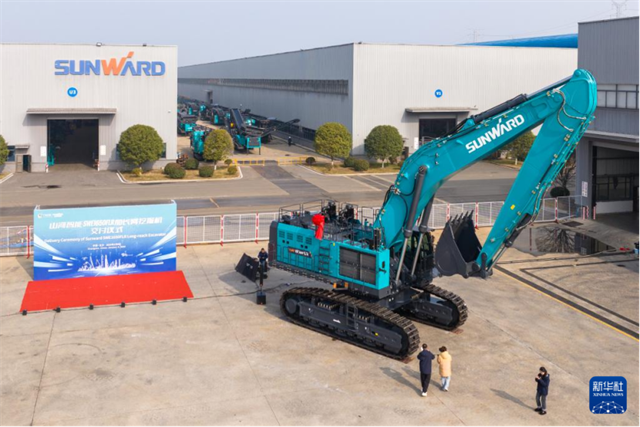 The photo, taken on January 6, shows the Sunward SWE1650FLR long-reach excavator at the Sunward Industrial Town, Changsha. (Photo/Chen Sihan, Xinhua)