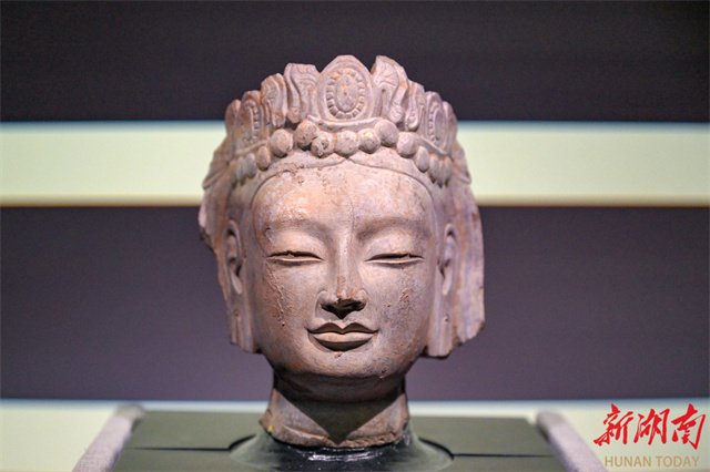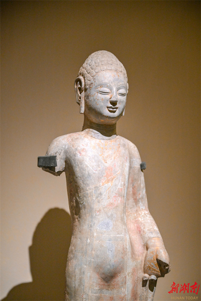 An exquisite Qingzhou-style Buddha statue of the Northern Dynasties on display. (Photo/Guo Liliang, Hunan Daily)