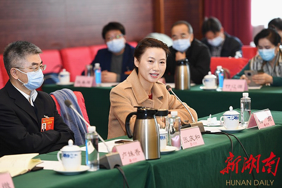 On the morning of January 26, CPPCC Member Peng Jun talked about ecological protection and restoration of the Dongting Wetland during a joint discussion of Hunan Provincial Committee of Jiusan Society, Hunan Association for Science and Technology, and Education Circles. (Photo/Zhao Chi, Hunan Daily)