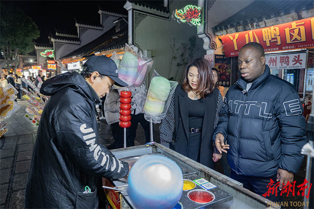 On the evening of February 12, Airui (R) and his wife Li Xiuli enjoyed the night view at Lingling Ancient Town Scenic Area in Yongzhou City, celebrating the Chinese Lantern Festival. After arriving in Hunan in 2014, Airui met and fell in love with Li Xiuli, a native of Yongzhou. They got married in 2017 and have since settled in Yongzhou. Airui expressed his deep affection for China, stating that he and his wife made a special visit to the Lingling Ancient Town during this year's Lantern Festival to experience the strong festive mood. (Photo/Li Jian and Wang Liang, Hunan Daily)