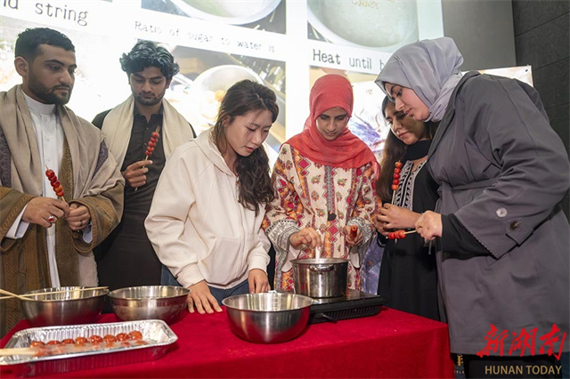 The photo, taken on February 25, shows international students making "tanghulu", a traditional Chinese snack made of sugarcoated haws and other fruits or vegetables on a stick, at a cinema in Changsha. On the same day, Hunan University of Chinese Medicine launched a study tour themed "Following Ne Zha to Explore Chinese Culture". During the event, international students watched "Ne Zha 2", a Chinese animated blockbuster; delved into the culture of traditional Chinese medicine depicted in the movie; tried their hand at making "tanghulu", a traditional Chinese snack made of sugarcoated haws and other fruits or vegetables on a stick; and, learned paper-cutting skills. The event enabled them to have a close-up experience of traditional Chinese culture. (Photo/Gu Pengbo, Hunan Daily)