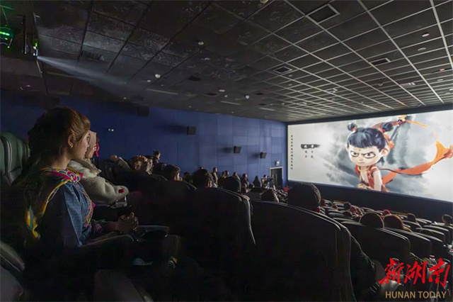 The photo, taken on February 25, shows international students watching "Ne Zha 2" at a cinema in Changsha. On the same day, Hunan University of Chinese Medicine launched a study