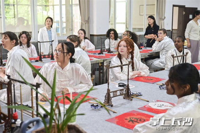 On the morning of April 14, 20 teachers and students from Montargis in the Centre-Val de Loire region of France visited Changsha County No.1 High School to experience Tai Chi and Chinese calligraphy. During the Tai Chi class, the students observed demonstrations attentively and practiced the movements meticulously. In the calligraphy class, they were patient and meticulous, using the writing brushes to create their own calligraphic works. Over the next few days, the French delegation will continue to explore broader aspects of Chinese culture in Changsha. The rich cultural activities will help enhance the French students' understanding of Chinese culture and further ignite their interest in it.