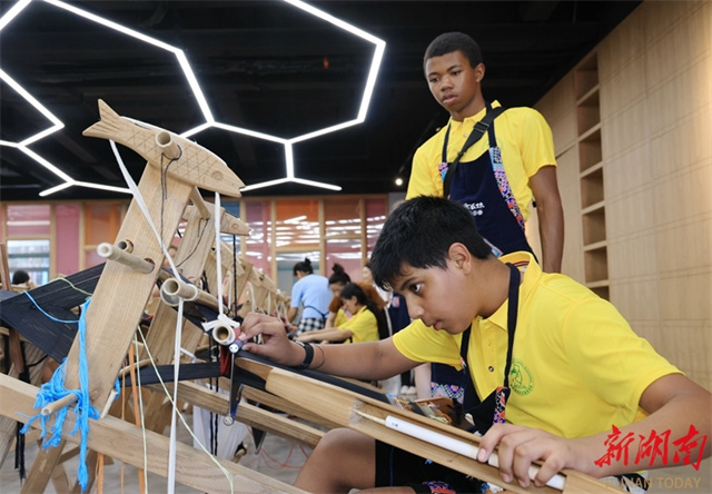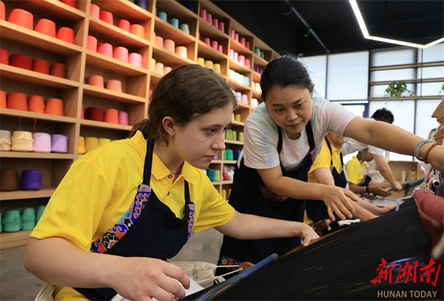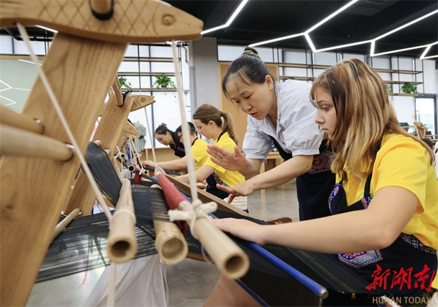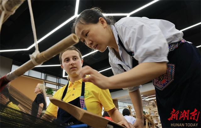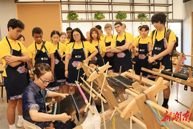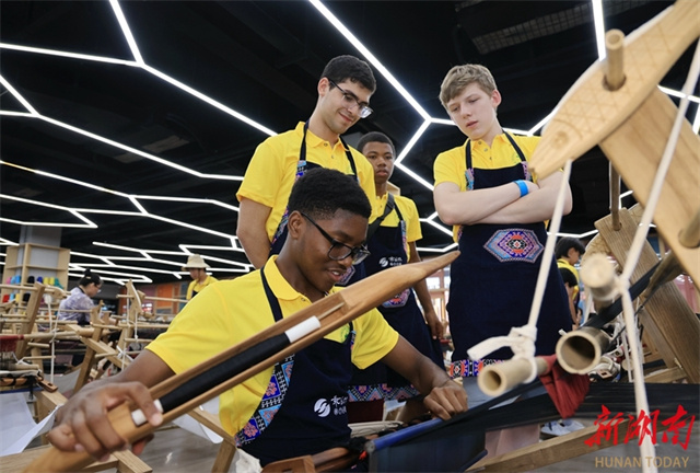 On July 2, a group of students from the United States visited the Guaiyaomei Tujia Brocade Cultural Creative Park in Zhangjiajie City. Through observation and hands-on experience, these foreign guests gained insights into the Tujia brocade craftsmanship and deepened their understanding of Chinese culture. (Photo/Wu Yongbing)