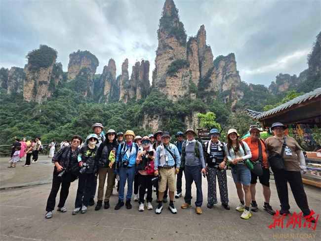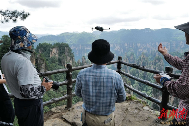 A 19-member delegation of photographers from South Korea went on a photography tour at Wulingyuan and Tianzi Mountain scenic areas in Zhangjiajie between August 7 and 10. Korean photographers admired towering peaks, recording Zhangjiajie's magnificent landscapes with their cameras and drones.