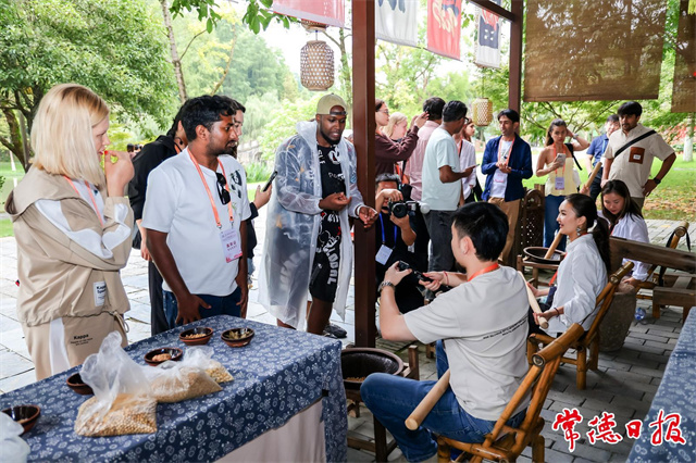 Subsequently, the influencers embarked on a journey of "Searching for the Hidden Paradise" at the Taohuayuan Scenic Area. They visited iconic landmarks such as Taohua Mountain, Taoyuan Mountain, and Zhuangyuan Bridge, savoring tranquility amidst the cobblestone paths and lush bamboo groves. The scenic area's lei cha (ground tea) experience zone buzzed with activity. Staff members demonstrated how to make lei cha while influencers personally ground ingredients, savoring the refreshingly sweet brew they crafted themselves and immersing themselves in Changde's culinary heritage. A travel influencer from Rwanda expressed his admiration for the Taohuayuan Scenic Area: "amazing!"