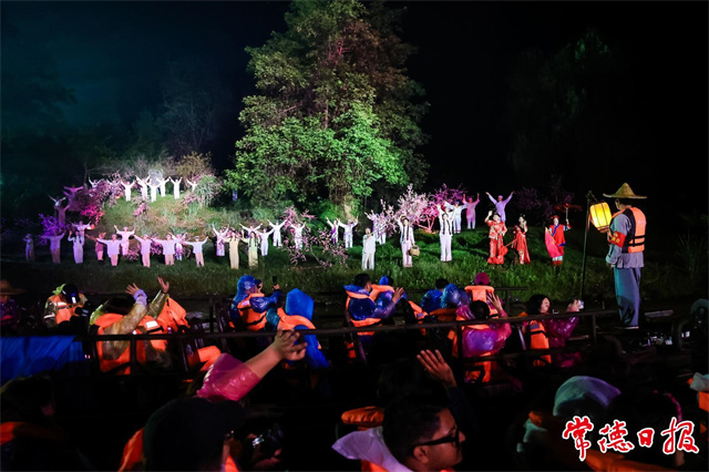 As night fell, the influencers boarded boats at Qinxi's Wuliu Pier and drifted along the Qinxi River. A large-scale live-action performance, inspired by the fable "Peach Blossom Spring" written by Tao Yuanming (365-427), unfolded before them. They watched as "Wuling fishermen" explored hidden realms while "Taohuayuan villagers" sang and danced. Under the lights, the influencers felt as though they had traveled back through a thousand years. William, a blogger from Singapore, marveled, "The performance was breathtaking! The romantic finale, with peach blossom petals filling the sky, truly moved me!"