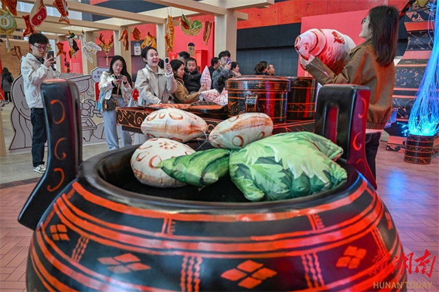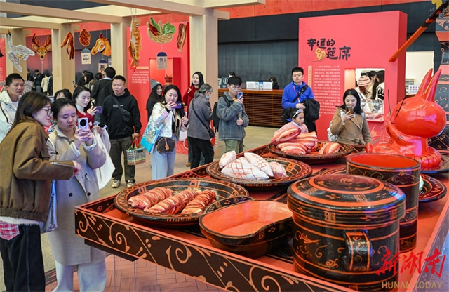 On January 23, the Mawangdui Culinary Culture Promotion Activity and the "Flavor of Hunan" Event kicked off at Hunan Museum. The activities include the promotion of Mawangdui food culture and the Third "Flavor of Hunan" Mawangdui Culinary Culture Exhibition. Efforts have been made to promote the integration of cultural tourism and gourmet food, and carry forward Huxiang culture through a systematic study of Mawangdui food culture, developing novel gourmet products, and popularizing the brand of Mawangdui food. The photo shows tourists visiting the "Flavor of Hunan" Mawangdui Culinary Culture Exhibition. (Photo/Guo Liliang, Hunan Daily)