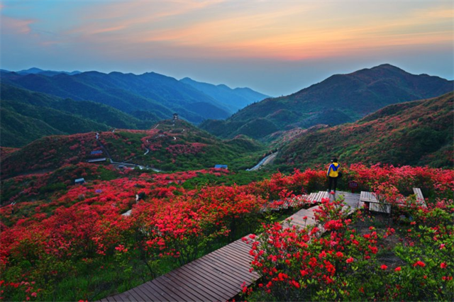 This year's azalea season, themed "Captivating Azaleas Only in Dawei Mountain", will run from April 26 to May 20. As the largest wild azalea viewing destination in central China, Dawei Mountain boasts over 100,000 mu (about 6,666 ha.) of natural azalea fields. Thanks to its unique vertical climate, the flowers bloom in succession at an altitude ranging from 500 to 1,607.9 meters above sea level, creating breathtaking views. Visitors can experience a unique floral journey during three different blooming periods of cherry blossoms and azalea flowers.