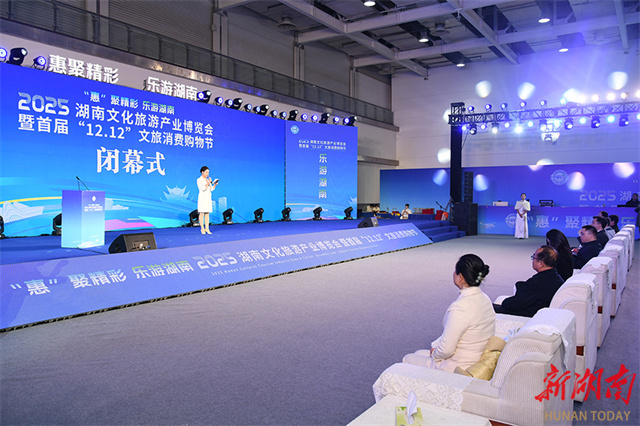 The 2025 Hunan Cultural Tourism Industry Expo and the 1st December 12th Cultural Tourism Shopping Festival concluded on December 14. This year's expo integrated exhibitions, transactions, and experiential activities, showcasing achievements in "cultural tourism + technology" integration. During the closing ceremony, trade data from the expo was released, and awards were presented to organizations and individuals who excelled in competitions such as the Hunan Cultural Tourism Commodities Competition and the First Healthy Hunan Cuisine Culinary Competition for Famous Restaurants and Chefs of Hunan Province. (Photo/Tian Chao and Hu Xueyi, Hunan Daily)