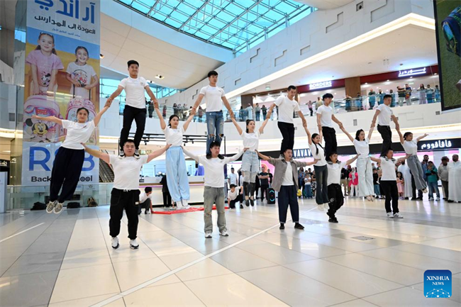 Artists from China's Hunan Province perform during a flash mob show at the Avenues Mall in Farwaniya Governorate, Kuwait, on Sept. 4, 2024. (Photo by Asad/Xinhua)