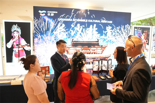 of Changsha's intangible cultural heritages took place in Dubrovnik, Croatia, and Helsinki, the capital of Finland. Forty carefully selected high-definition landscape photos of Changsha City and over 50 fine intangible cultural heritage products from the city were on display. The photos presented Changsha's vibrant urban style, representative landmark landscapes, colorful night markets, ancient and leisurely streets and lanes, local cultural customs, and brilliant fireworks. The intangible cultural heritage display highlighted Changsha's intangible cultural heritage items such as Hunan embroidery, chrysanthemum stone carving, traditional incense, Liuyang Xiabu cloth, Changsha Kiln porcelain, and Changsha dough sculptures. Some new cultural and creative products catering to the city's fashion of new Chinese-made goods were also showcased. With their novel and diverse designs and rich colors, the products drew great attention and praise from local residents and tourists.