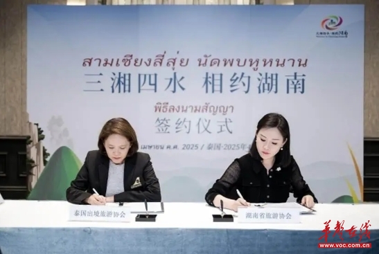 At the meeting, both sides engaged in in-depth discussions on deepening Hunan-Thailand tourism cooperation, enhancing travel convenience and promoting mutual tourist exchanges. Thai travel blogger and influencer "Fai" shared insights into Hunan's "five cultural and tourism calling cards" represented by Zhangjiajie, Shaoshan, Changsha, Hengshan Mountain, and the Chengtoushan Ancient Cultural Site. This presentation offered a comprehensive display of Hunan's abundant natural landscapes, historical and cultural heritage, and tourism resources. Cooperation agreements were signed between the Hunan Tourism Association and the Thai Travel Agents Association, as well as between the Hunan Sanhe International Travel Service and Thailand's Quality Express Co., Ltd.