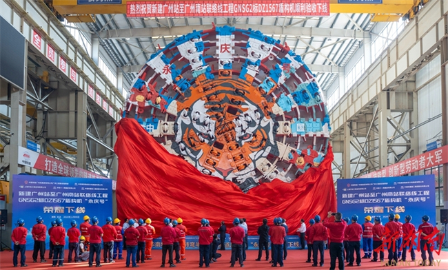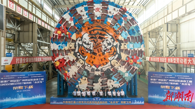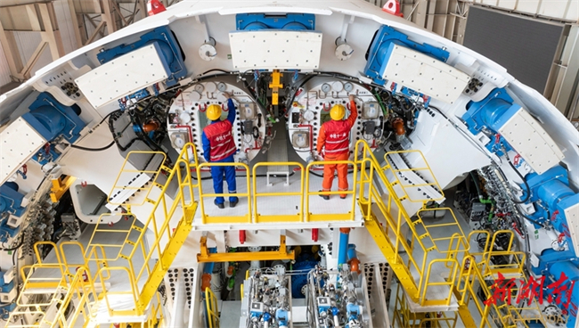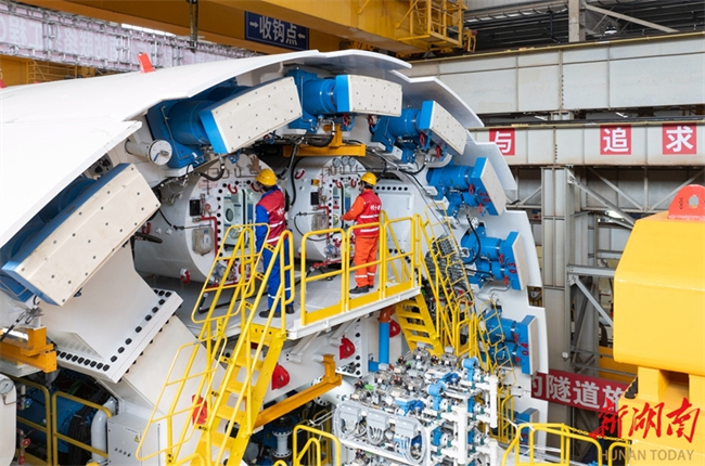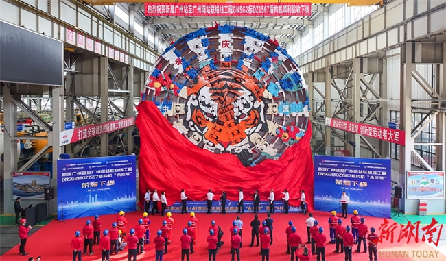 With a power capacity of nearly 12,000 kilowatts, the machine's excavation diameter reaches 12.85 meters. Upon delivery to Guangzhou City, Guangdong Province, it will be used in the construction of the high-speed railway connection line between the Guangzhou Railway Station and the Guangzhou South Railway Station. (Photo/Gu Pengbo, Hunan Daily)