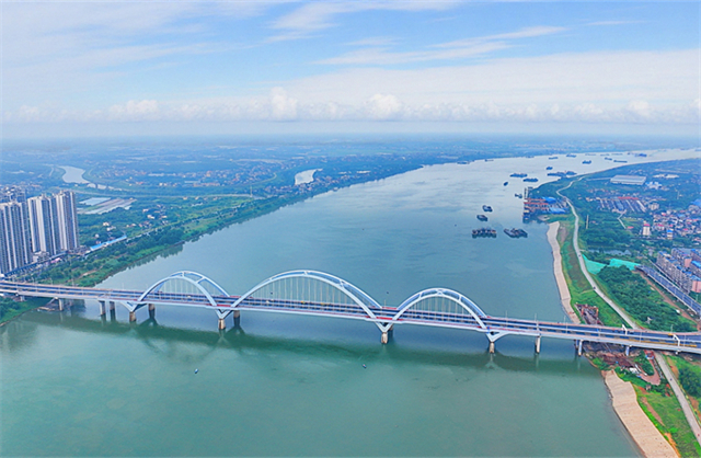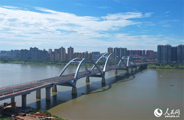 The Xiashesi Grand Bridge spans over the Xiangjiang River. (Photo/Liu Bin, People's Daily)