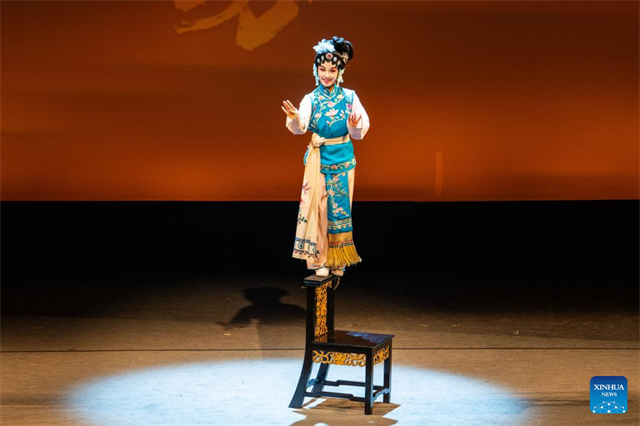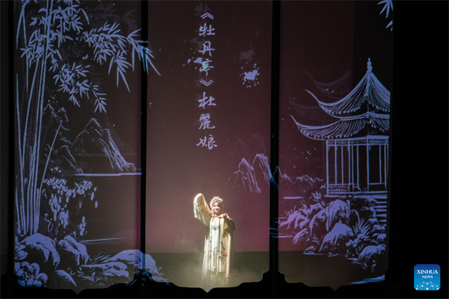 An actor is pictured during an immersive Kunqu Opera show in Chenzhou City, central China's Hunan Province, July 18, 2025. The centuries-old art of Kunqu Opera has been listed by the United Nations Educational, Scientific and Cultural Organization (UNESCO) as an intangible cultural heritage. Kunqu artists are injecting modern elements to enhance its charm to younger audience today. (Xinhua/Chen Sihan)
