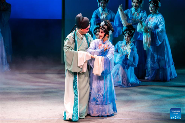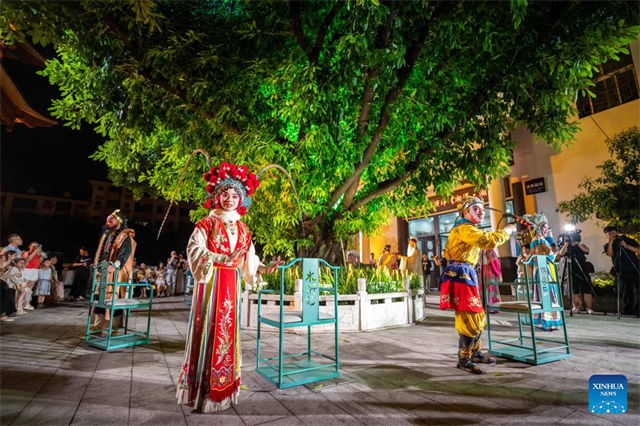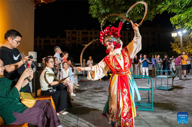 Actors are pictured during an immersive Kunqu Opera show in Chenzhou City, central China's Hunan Province, July 18, 2025. The centuries-old art of Kunqu Opera has been listed by the United Nations Educational, Scientific and Cultural Organization (UNESCO) as an intangible cultural heritage. Kunqu artists are injecting modern elements to enhance its charm to younger audience today. (Xinhua/Chen Sihan)