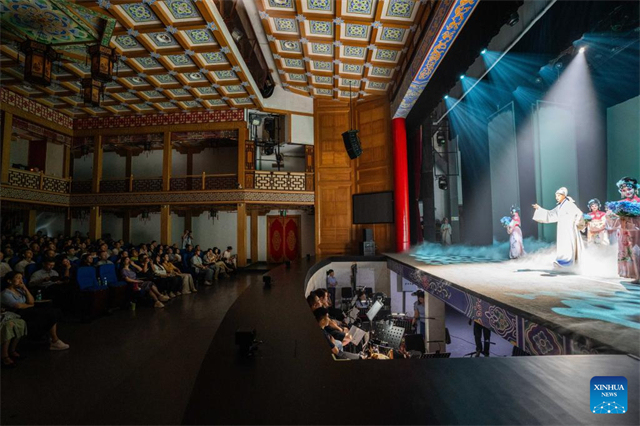 Audiences watch an immersive Kunqu Opera show in Chenzhou City, central China's Hunan Province, July 18, 2025. The centuries-old art of Kunqu Opera has been listed by the United Nations Educational, Scientific and Cultural Organization (UNESCO) as an intangible cultural heritage. Kunqu artists are injecting modern elements to enhance its charm to younger audience today. (Xinhua/Chen Sihan)
