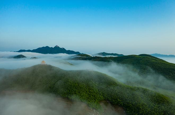 Yuntai Mountain is in the west of Malu Town, Anhua County. It is the birthplace of Daye Tea, one of the top 21 high-quality tea leaves in China. Its unique geological condition and karst landform gave birth to the beautiful natural landscape and rich resources. On the mountaintop stands Zhenwu Temple, which was originally built during the reign of the Hongwu Emperor of the Ming Dynasty. The temple enjoys a long history of Taoism culture. The mountain is also known for its cloud scenery which lasts for more than 200 days every year.