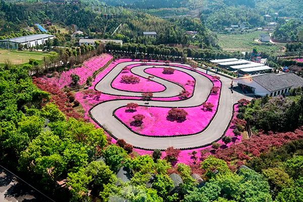 Xiangtan's Paragon Garden, a national 4A-level tourist attraction, is located at the core area of the Green Heart Zone of Changsha-Zhuzhou-Xiangtan City Cluster. Its forest coverage rate reaches over 95%, making it a rare natural oxygen bar in urban areas. Covering an area of 3.5 square meters, the scenic spot pursues green ecology and integrates forest tours, flower-admiring tours, leisure travel, cultural experience, and themed park trips. The tourist attraction is composed of four parts for flower-admiring, family tour, outdoor training, and study tour. There are nine flower appreciation areas featuring cherry blossoms, azalea flowers, lotus flowers, Eupatorium fortune, camellia, rose, wisteria, moss pink, and Chinese peony, and five theme parks highlighting flowers, bonsais, vegetables, farming culture, and grapes.