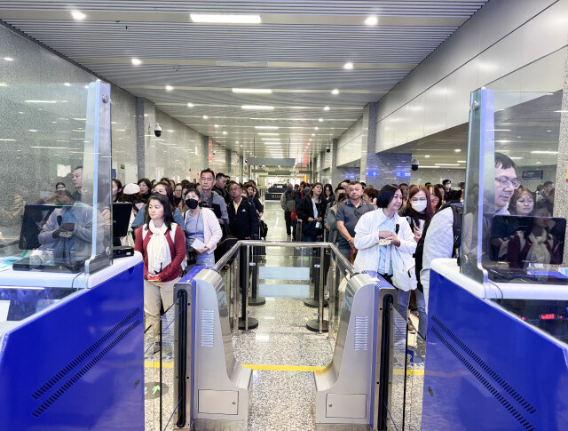Travelers queue for customs checks at Zhangjiajie Hehua International Airport. (Photo/the corespondent)