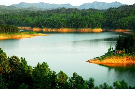 In the late spring or early summer, the islands in the lake are like green spiral shells , vivid and peaceful, in the light of afterglow. The picturesque view differs in morning and evening as well as four seasons. Canoeing the boat on the lake, you could feel intoxicated in the view of landscape and enjoy the special atmosphere between the mountains.