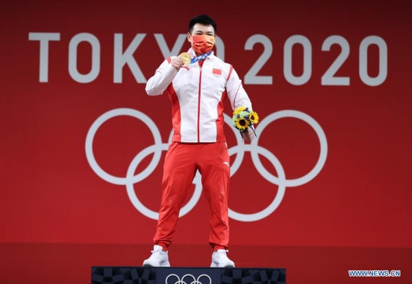 TOKYO, July 25 (Xinhua) -- Chinese weightlifter Shen Lijun rallied in the clean and jerk to claim the men's 67kg gold medal at the Tokyo Olympics here on Sunday.