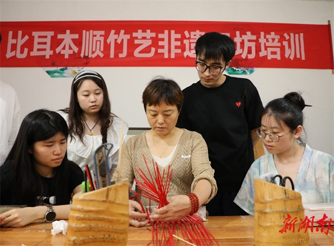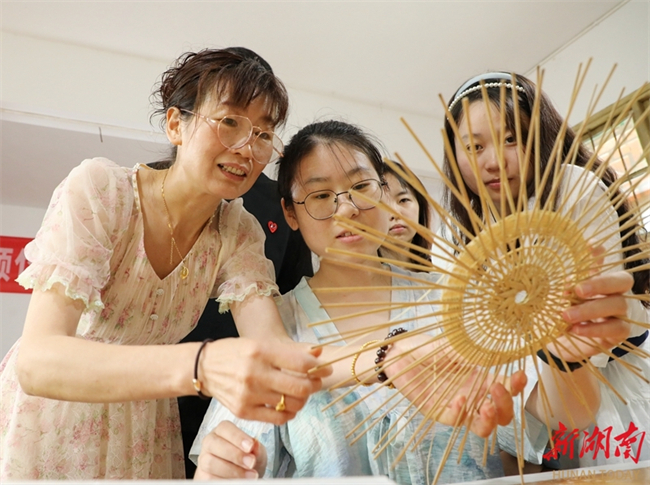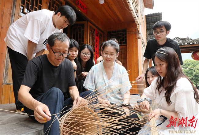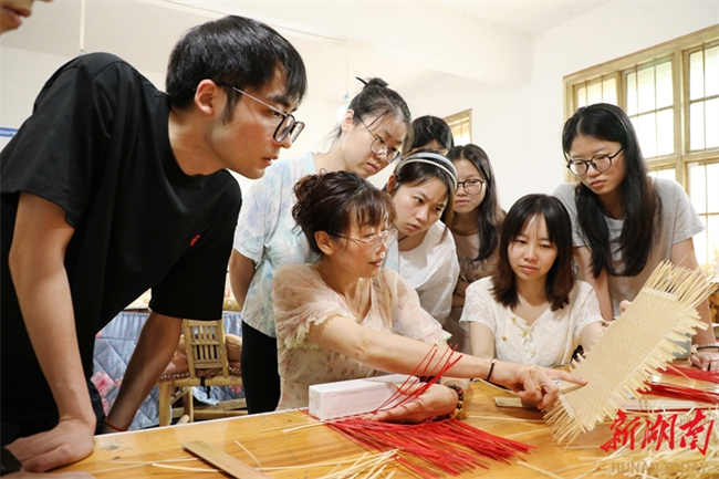 The Central South University of Forestry and Technology organizes a series of social practice activities for its students during summer vacation. The students explore the workshops of the intangible cultural heritage (ICH) representative inheritors via various forms such as field visits, personal interviews, and discussions. Through these activities, they can experience ICH skills up-close, feel the charms of these cultural treasures, and enjoy an enriched holiday. The photo shows students learning bamboo weaving skills at a bamboo art ICH workshop in Bi'er Town, Baojing County, Xiangxi Tujia and Miao Autonomous Prefecture. (Photo/Yu Caihua and Xiang Wei)