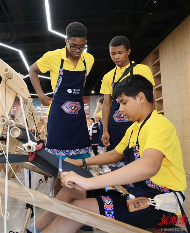 On July 2, a group of students from the United States visited the Guaiyaomei Tujia Brocade Cultural Creative Park in Zhangjiajie City. Through observation and hands-on experience, these foreign guests gained insights into the Tujia brocade craftsmanship and deepened their understanding of Chinese culture. (Photo/Wu Yongbing)