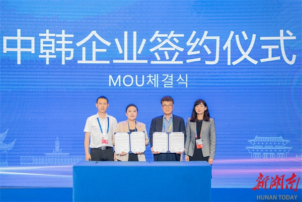 The 2024 Hunan-South Korea Trade Matchmaking Conference, part of the Expo Central China 2024, was held in Changsha on June 1. In recent years, Hunan and South Korea have witnessed increasingly frequent economic exchanges, with the bilateral trade growing by about 22.3% over the past five years. The photo shows a signing ceremony between Chinese and South Korean companies. (Photo/Li Jian and Peng Kexin, Hunan Daily)