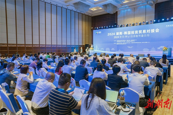 The 2024 Hunan-South Korea Trade Matchmaking Conference, part of the Expo Central China 2024, was held in Changsha on June 1. In recent years, Hunan and South Korea have witnessed increasingly frequent economic exchanges, with the bilateral trade growing by about 22.3% over the past five years. The photo shows the matchmaking conference. (Photo/Li Jian and Peng Kexin, Hunan Daily)