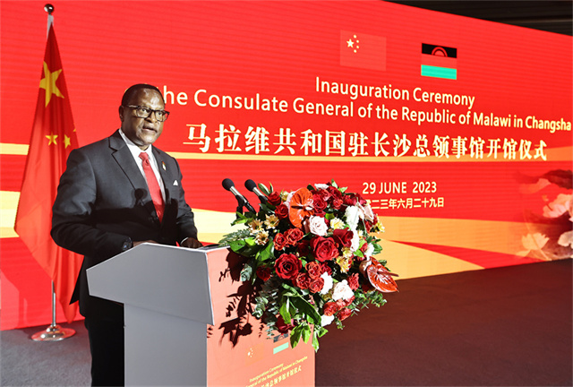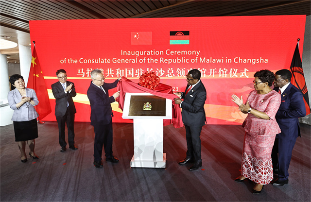 The inauguration ceremony of the Consulate General of the Republic of Malawi in Changsha took place on the afternoon of June 29, 2023. Lazarus Chakwera, president of the Republic of Malawi, and Shen Xiaoming, secretary of the CPC Hunan Provincial Committee, unveiled the Consulate General plate.