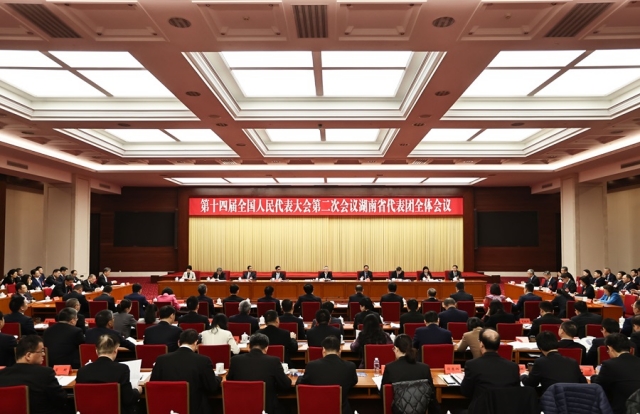 The Hunan delegation at the second session of the 14th National People's Congress (NPC) held its fifth plenary meeting in Beijing on the morning of March 10, 2024. The deputies deliberated the work reports of the NPC Standing Committee, the Supreme People's Court (SPC), and the Supreme People's Procuratorate (SPP).
