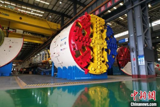 The shield tunneling machine to be exported to Romania rolls off the production line in Changsha on September 12. (Photo/Tang Ye)