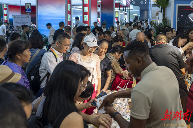 On June 15, visitors flocked to the South Africa Booth, Changsha International Convention and Exhibition Center. A briefing on the outcomes of the Fourth China-Africa Economic and Trade Expo was held on the same day. As of 12:00 on June 15, the number of visits to this year's expo exceeded 200,000, doubling that of the previous session. (Photo/Gu Pengbo, Hunan Daily)