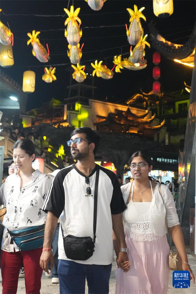 The photo, taken on May 20, shows Indian tourists visiting the 72 Unusual Houses Scenic Spot in Zhangjiajie. (Photo/Xue Yuge, Xinhua)