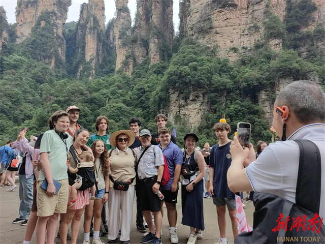 On June 9, a group of nearly 100 tourists from the United States visited the Zhangjiajie National Forest Park to explore the landscape that inspired Pandora's Hallelujah Mountains in the movie Avatar, embarking on an unforgettable journey to explore China's natural wonders. This is the largest overseas tour group Zhangjiajie has received this year and the biggest U.S. tourist group in recent years.