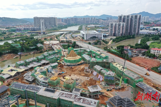The photo, taken on June 29, shows a busy scene at the construction site of the Tianwen Island Project in Huaihua. Currently, Huaihua City is taking all-out efforts to advance the construction of cultural and tourism projects, with all construction units implementing detailed plans and working out timetables to ensure the on-time delivery of key projects for the fifth Hunan Tourism Development Conference. (Photo/Chai Junlin)
