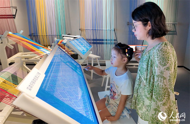 Dong brocade on display supported by digital technology. (Photo/Huang Zhuo, People's Daily)