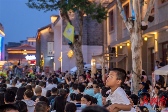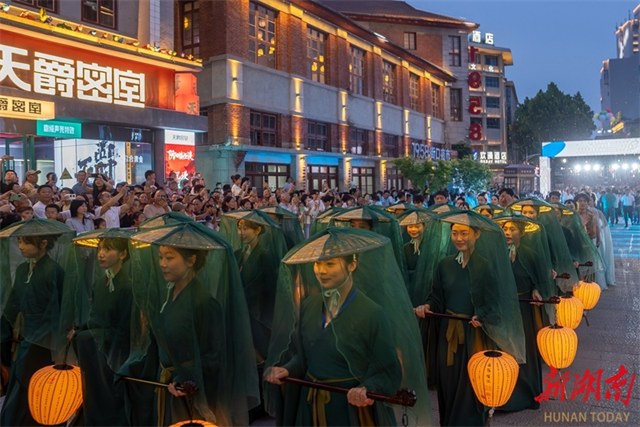On the evening of May 24, the Demonstration Zone for Historical and Cultural Protection and Utilization of Yueyang Tower opened in Yueyang City. The demonstration zone consists of historical downtown areas and historical and cultural neighborhoods. As a core project of the 4th Hunan Tourism Development Conference, it demonstrates the unique city style of "Beautiful Dongting Lake and Splendid Yueyang Tower". There are now 59 historical and 118 traditional buildings renovated in the zone, with 73 cultural and creative artistic stores, intangible cultural heritage workshops, immersive performing arts, and other characteristic business formats established. The zone will be built into a whole chain of consumption scenarios, integrating landscapes, stores, and alleys with traditional styles and historical memories. (Photo/Tong Zhenxi, Hunan Daily)