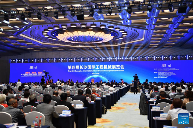 This photo taken on May 15, 2025 shows the opening ceremony of the 4th Changsha International Construction Equipment Exhibition in Changsha, central China's Hunan Province. The event is held here from May 15 to 18, featuring new-generation machinery equipment for construction, emergency service, mining, agriculture and transportation, with an exhibition area of 300,000 square meters. (Xinhua/Chen Zhenhai)