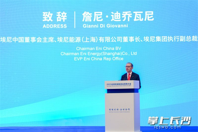 Gianni Di Giovanni, chairman of the Eni China BV, chairman of the Eni Energy (Shanghai) Co., Ltd., and executive vice president of the Eni China Rep Office, delivers a speech. (Photos/Guo Yudi, Changsha Evening News)