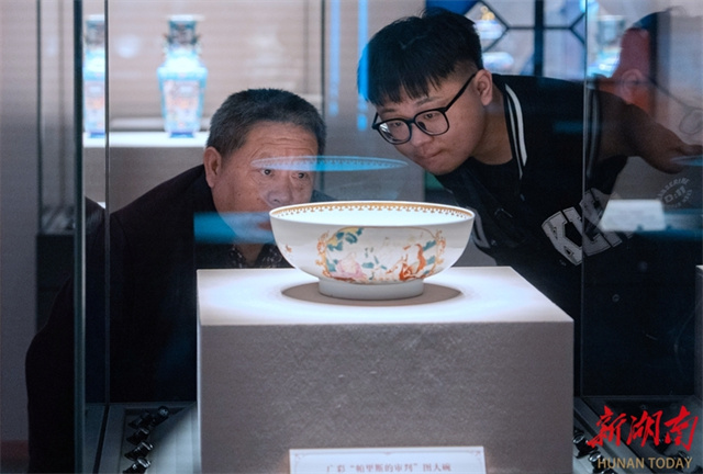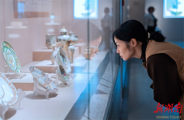 A special exhibition titled "Sailing Overseas-- Exhibition of Exquisite Qing Dynasty Export Artifacts Collected by the Dongguan Museum" opened at the Changsha Museum on November 11. The exhibition features over 150 fine export artworks that blend traditional Chinese craftsmanship with Western aesthetics, including Guangzhou painted porcelain, export fans, lacquerware, and silverware. It vividly recreates the brilliant history of Sino-Western trade and cultural exchanges from the 18th to the 19th century, inviting visitors to a transoceanic dialogue among civilizations. (Photo/Li Jian, Hunan Daily)