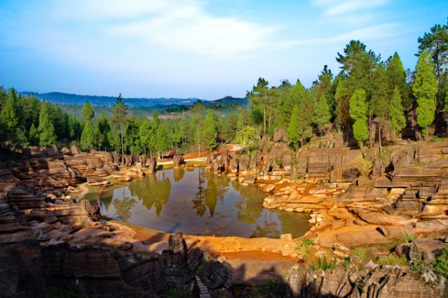 The geopark may date back to the Ordovician Period of 480 million years ago. The park outstands with its deep caves and miles of red carbonate-rock stones whose color changes with the weather, purplish red in sunny days and brownish red on rainy days.