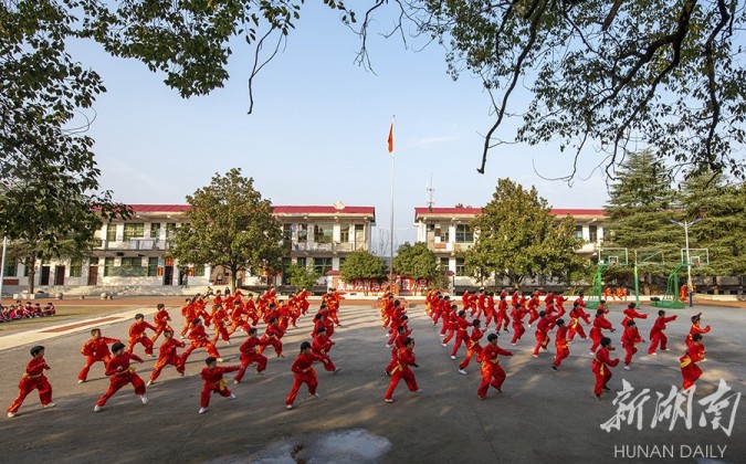 Photo taken on November 24 shows students practice martial arts at Jiangdong Wenwu School in Dong’an County. (Photo/Jiang Keqing)
