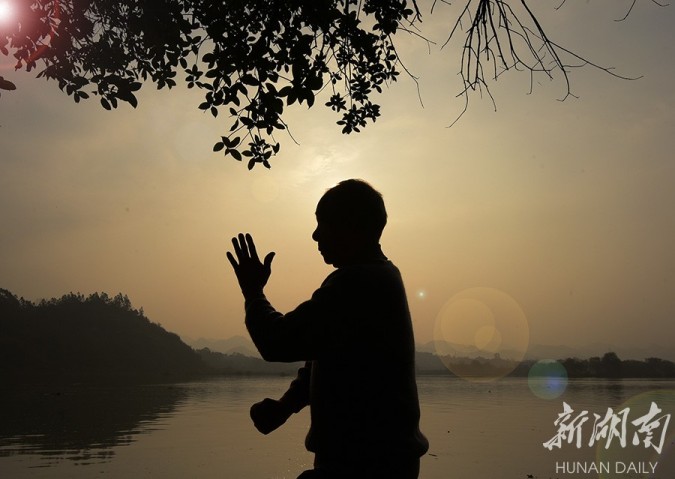 Photo taken on November 24 morning shows a citizen practices Taijiquan (Tai Chi) in Dong’an County. (Photo/Huang Chuntao)
