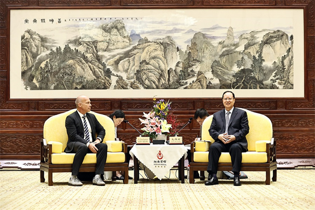 Mao Weiming, deputy secretary of the CPC Hunan Provincial Committee and governor of Hunan Province meets with Thomas Bauernhansl, director of the Fraunhofer Institute for Manufacturing Engineering and Automation.